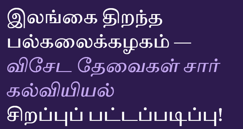 இலங்கை திறந்த பல்கலைக்கழகம் (OUSL), உள்ளடங்கிய கல்வியில் நிபுணத்துவம் பெற விரும்பும் ஆசிரியர்களுக்காக Bachelor of Education (Special Needs Education) பட்டப்படிப்பை அறிவித்துள்ளது.